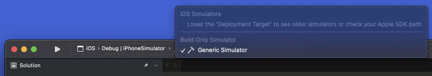To work around this issue, try downloading and installing an older version of Xcode from Apple (you can look for guidance on which Xcode version to use from the Xamarin.iOS release notes (this applies to MAUI as well). After installing the new version of Xcode, restart Visual Studio and load your project to verify your available simulator options.